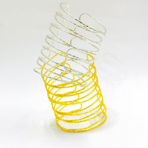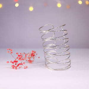 A bold cuff bracelet with an open cage design, blending structure and sophistication effortlessly.