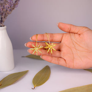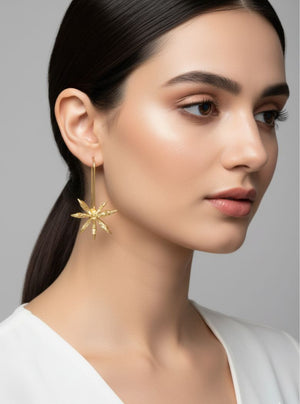 A delicate floral ear ornament with intricate petal detailing that adds traditional elegance to festive ensembles.