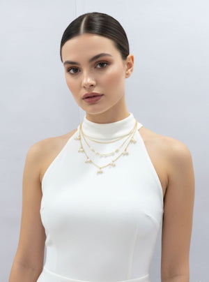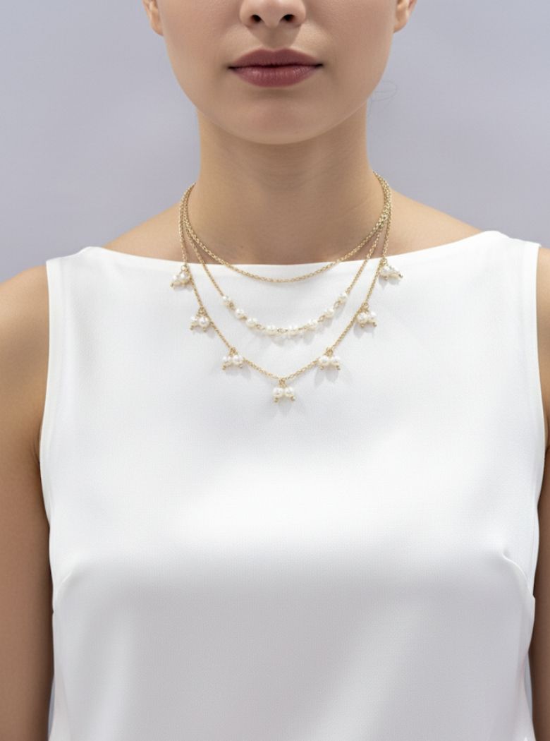 A string of elegant pearls brought together with gold detailing for a look that never goes out of style.